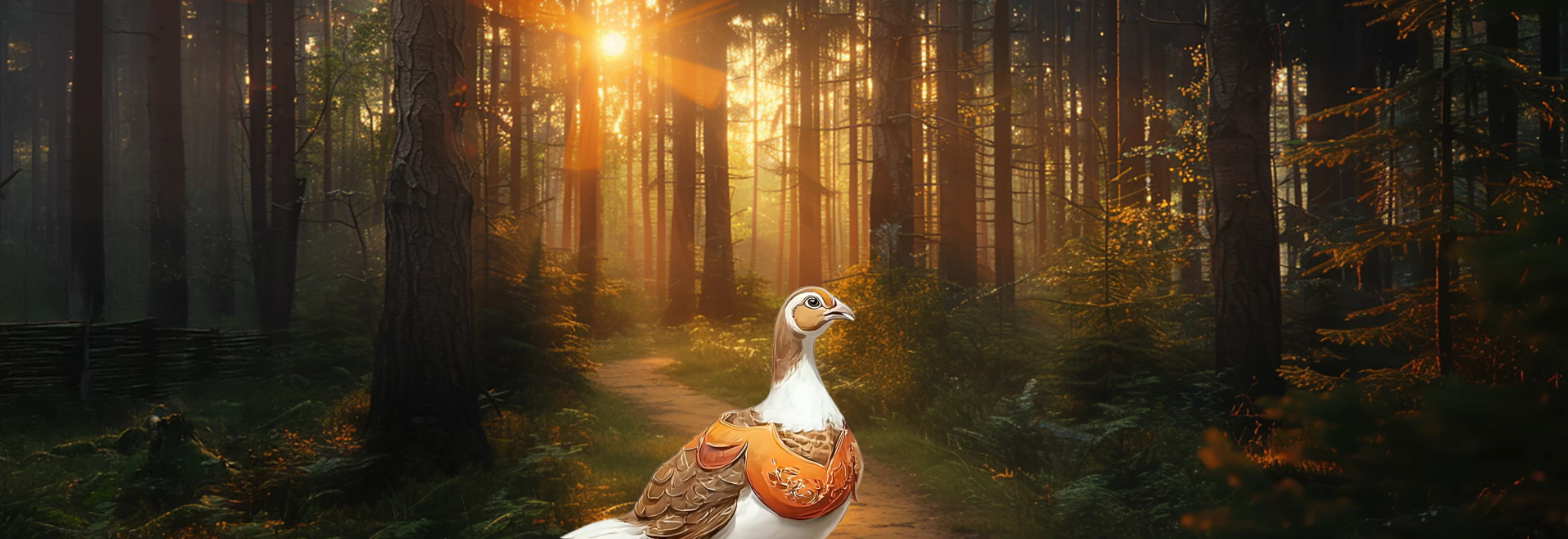 Midjourney Visual Identity Custom AI-generated illustrations creating the barnyard environment and character visuals — the Six Geese, the mischievous swan, the Partridge narrator, and the barnyard setting. Consistent visual style throughout.